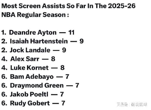 然而數據統計顯示,湖人前狀元中鋒被誤解了,雖然才打了2場球,但艾頓通過擋拆已經讓隊友11次轉換成得分,這項數據干脆領跑全聯盟。此外兩名火箭舊將,以賽亞-哈爾滕施泰因和喬克-蘭代爾都進入前三,也是讓人感慨萬千。